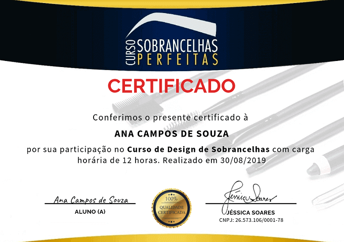 Após concluir o Curso Sobrancelhas Perfeitas, você terá acesso a um lindo certificado de conclusão que você poderá emitir direto da sua área do aluno.