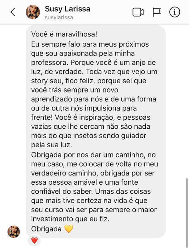 Você terá acesso direto comigo para ter suporte e tirar suas dúvidas.