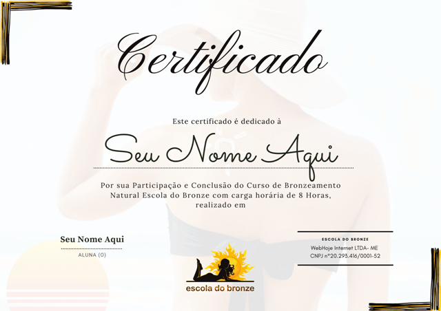 Após finalizar todas as aulas do curso você vai ter acesso ao certificado de conclusão atestando a sua capacitação em Bronzeamento Natural, você pode gerar e baixar o certificado direto na sua área do aluno.